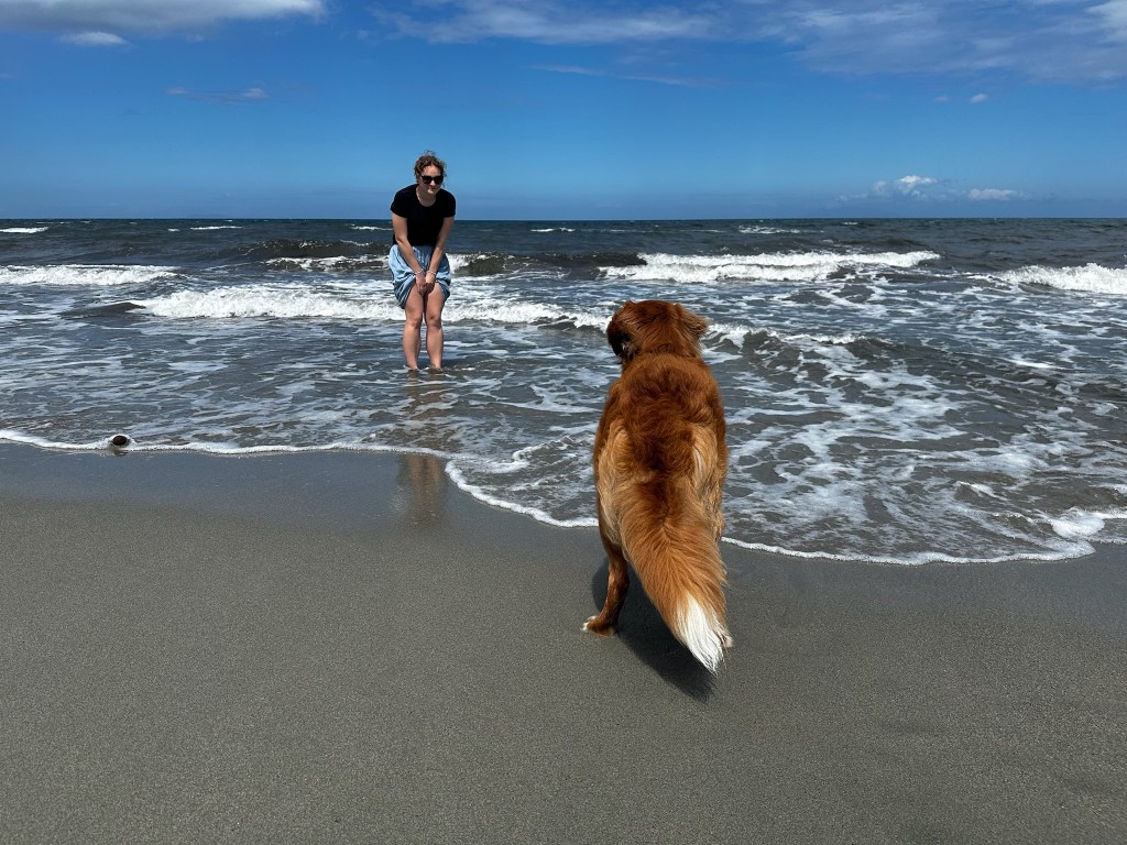 Toller, jak známo, je pes do vody, k vodě nebo i pod vodu. Nadšení z moře bylo veliké. Vlny se dají lovit a může se před nimi utíkat. Samo moře občas vydá něco zajímavého jako třeba mušli, což se dá krásně aportovat. Jednoduše zábava hodná kachňáka.